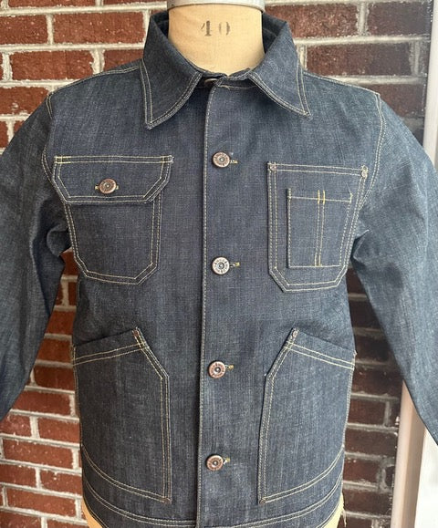 First quality 16 OZ Japanese raw denim, unlined with wild logo, shank buttons, and copper rivets